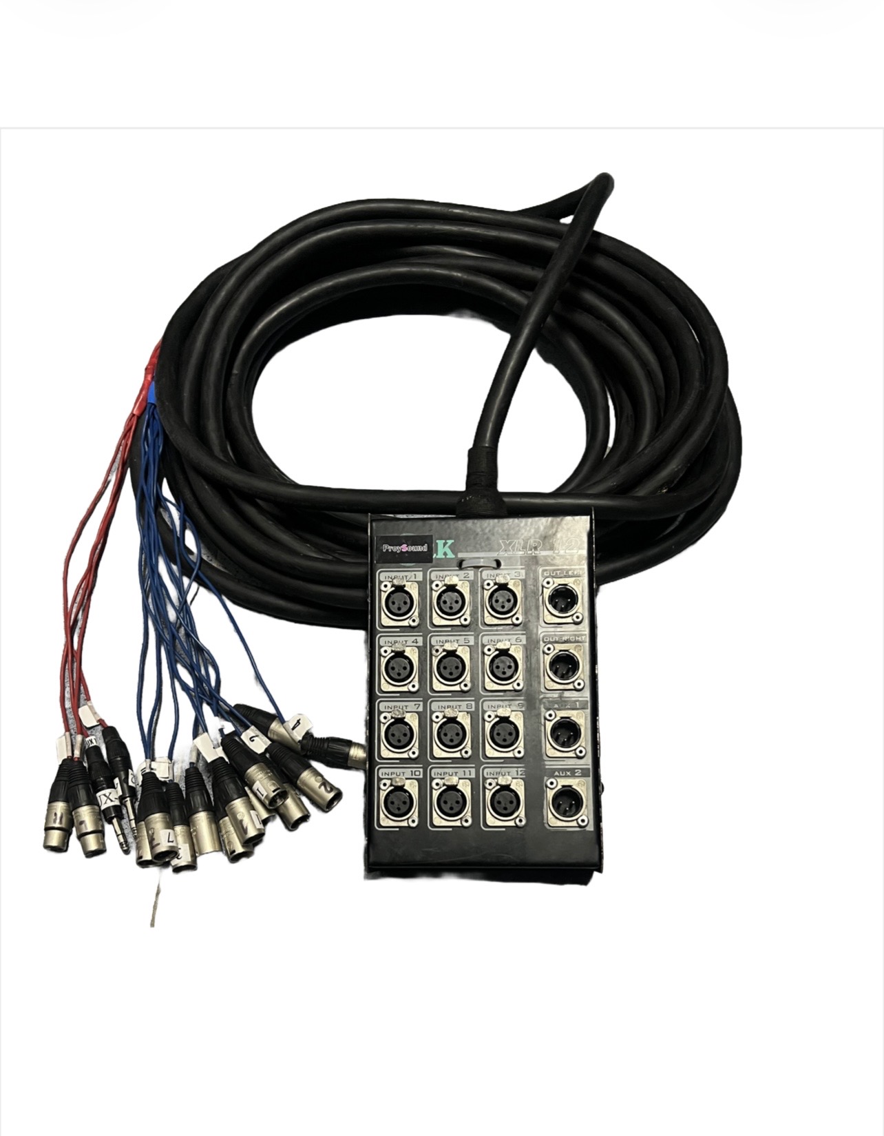 Alquiler Cajetin de sonido escenario 12-4 Xlr y jack conectores 15 m conectores Neutrik manguera tasker