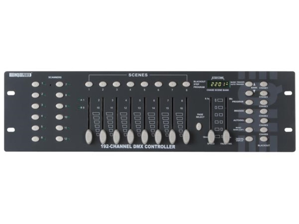 Alquiler de controlador dmx Diseñado para controlar un gran rango de efectos DMX de luz, dimmer y escáneres. Se puede montar en rack 19″ (3U). No utilice el aparato con el VDP250SC4.