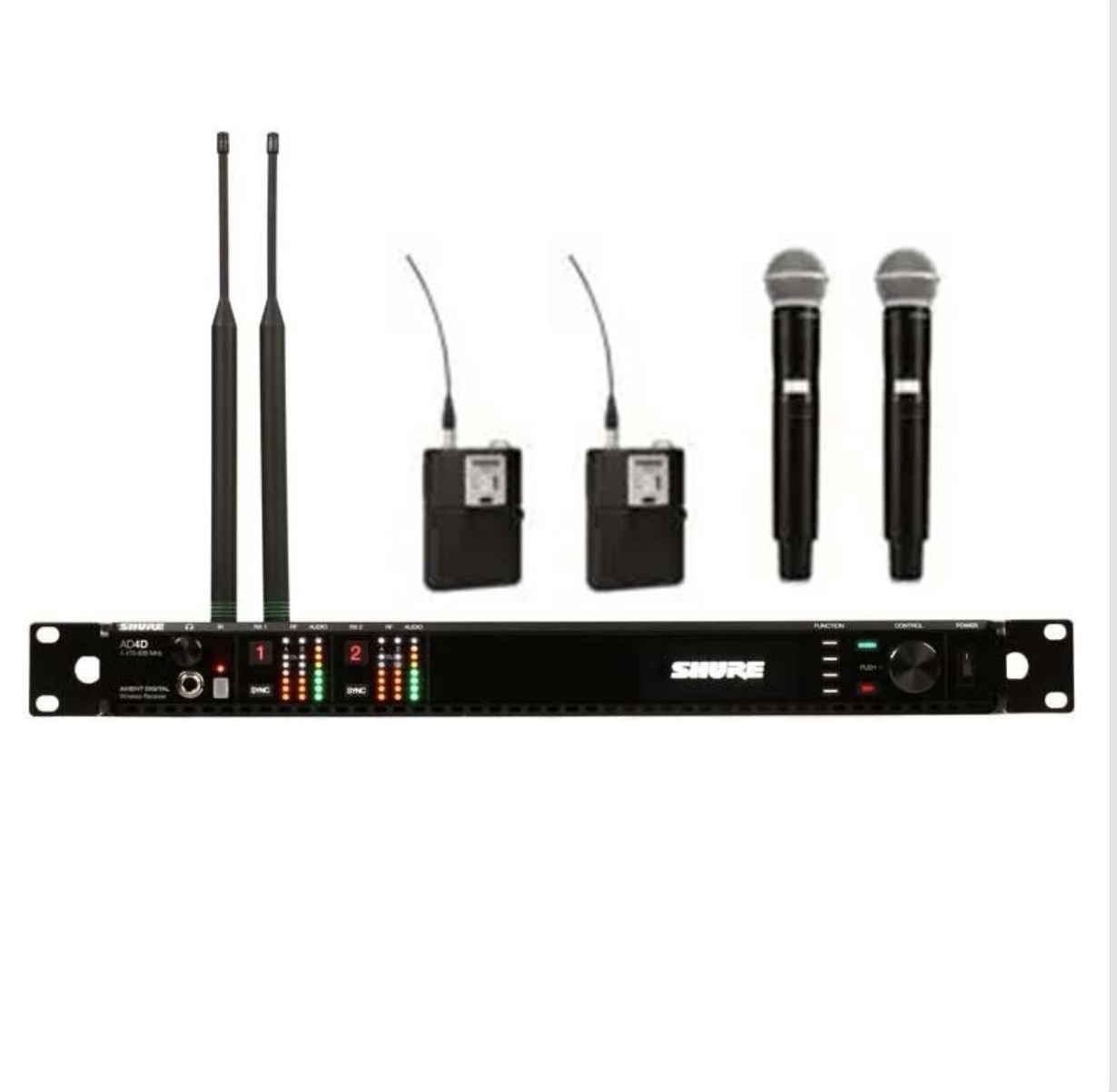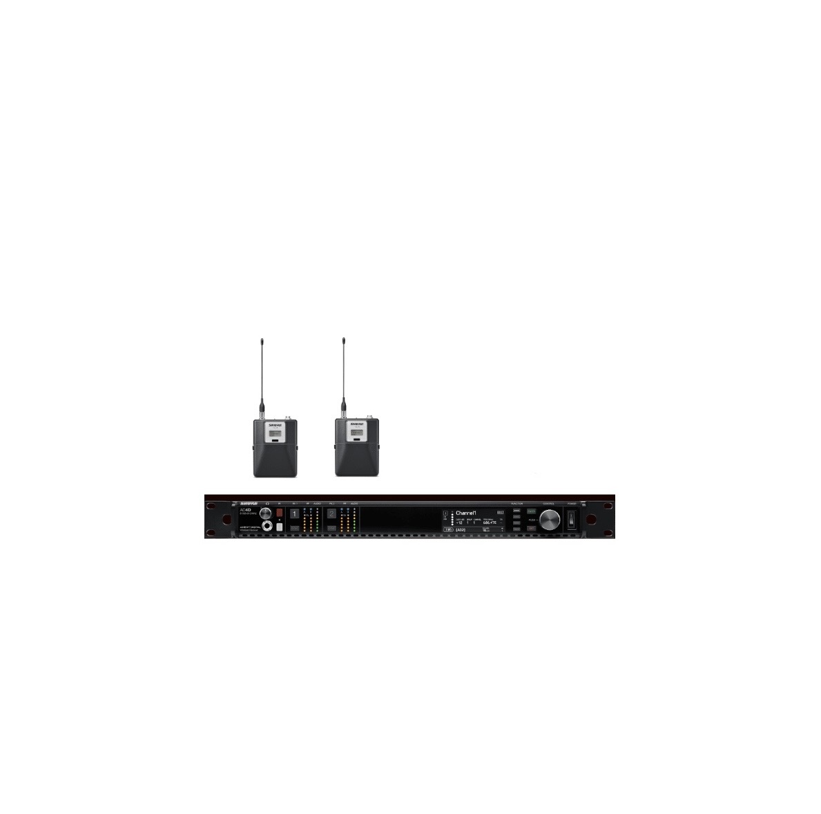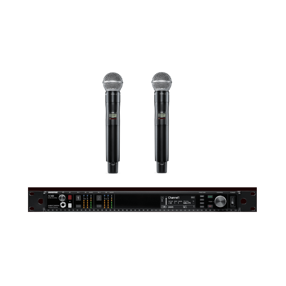 Alquiler de sistema Shure Axient digital (470-636) precio por una emisora dual Shure ad4d con 2 mic de mano ad2 con cápsula o petaca ad1